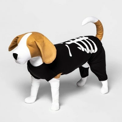 Get your pets in on your fright-night festivities with the Halloween Skeletons Matching Family Sleep Dog and Cat Pajama from Hyde & EEK! Boutique™. This pullover pajama for your cat or dog is made of a cotton fabric with added spandex for extra roomy stretch, and is covered in white skeleton bones against a black background to give your cat or dog a cute holiday look to sleep in, or even wear outdoors as a costume! Great for dogs and cats up to 10 pounds, it can be hand washed for wearing all through the spooky season.