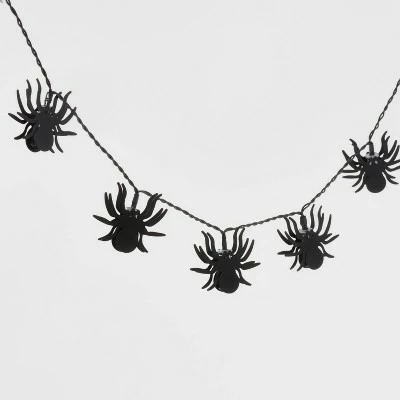 Put the perfect finishing touch on your spooky decor with these 10-Count LED Metal Spider Halloween String Lights from Hyde & EEK! Boutiqueâ„¢. Measuring over six feet in total length, this light string features 10 durable, long-lasting LED bulbs in creepy black metal spider frames hung on a black cord. Powered by two AA batteries (not included), the bulbs give off constant purple light to fill any corner of your home with an atmospheric glow.