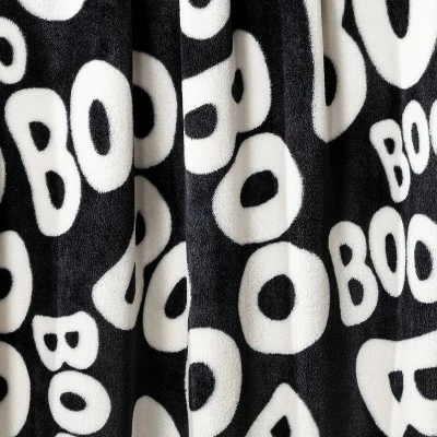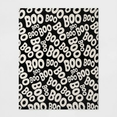 Get in the Halloween spirit this year with the help of this ‘Boo’ Printed Plush Throw Blanket from Hyde & EEK! Boutiqueâ„¢. Constructed from lightweight plush fabric, this comfy throw blanket boasts allover ivory “Boo” print set against a black background for fun contrast. Pair it with Halloween-themed pillows to create a spooky oasis in your home, or with other seasonal decor for festive flair. Best of all, you can simply pop it in the washing machine when it gets dirty — like when someone inevitably smushes a chocolate into it after trick-or-treating!