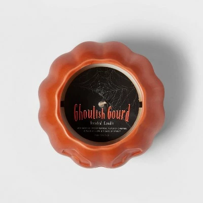 This 9oz Orange Ghoulish Gourd Ceramic Jack O’ Lantern Figural Candle from Hyde & EEK! Boutiqueâ„¢ is sure to make a great tabletop accent for Halloween. Halloween celebrations is sure to be a blast when this candle will infuse your home with a spice scent that creates an inviting ambience for your Halloween party. Made from ceramic in a solid orange smooth finish, this Hyde & EEK! Boutiqueâ„¢ Jack O’ Lantern figural candle goes well with any of your spooky settings.