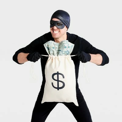 This Bank Robber Halloween Costume Accessory Set from Hyde & EEK! Boutiqueâ„¢ makes for a fun and easy costume whether you’re headed to a party or handing out candy at home. The accessories set includes a black hat, black eye mask, black gloves and money bag, complete with faux bills sticking out of the top. Just pair the pieces with a black tee and black pants for a quick and easy bank robber costume for your Halloween festivities.