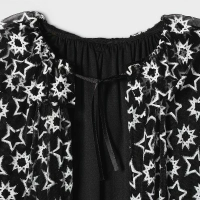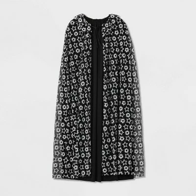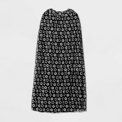 Add magic and mystery to this year’s costume with the Adult Cape Halloween Costume Wearable Accessory from Hyde & EEK! Boutiqueโข. This star-print cape has a rich black background that mixes easily with a wide variety of costumes, and the pattern has a glow-in-the-dark finish for an eerie touch as you float through the night. Simply tie it on over a black shirt and pants for a quick and easy costume, or go all out with a hat, a staff and makeup to match for seriously spooky style.