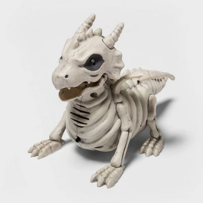- Animated light and sound dragon skeleton Halloween decorative prop ramps up the sinister feel of your holiday decorations