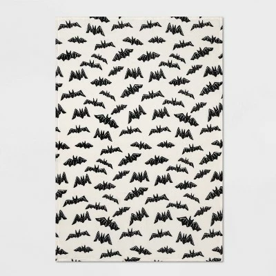 - Features allover black bat print set against an ivory background