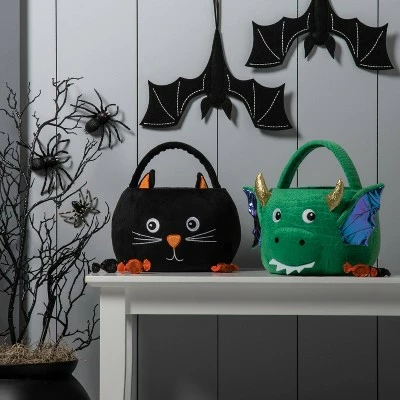 If your kid loves cats, they’ll adore this Cat Plush Halloween Trick-or-Treat Pail from Hyde & EEK! Boutiqueâ„¢. Made from plush fabric in a black hue, it features a cute cat face with eyes, orange ears, an orange nose, a white mouth and white whiskers. Designed with a top handle for easy carrying, it’s sure to help your kid gather more candy than any of the past years.