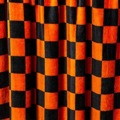 Keep things lively for fall with the Check Printed Plush Throw Blanket in Black/Orange from Hyde & EEK! Boutiqueâ„¢. Featuring a lightweight fabric construction, this orange-and-black check print throw blanket is made of a soft fabric with a plush knitted texture for comfy appeal. Drape it over the back of a sofa or chair in your living room, and pair it with a coordinating Halloween throw pillow for a fun look.