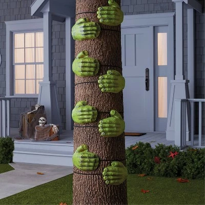Give your decor a spooky look with this Green Tree Trunk Hands Halloween Decorative Prop from Hyde & EEK! Boutiqueโข. Including multiple hands in a green color, this decorative prop looks spooky cool when displayed on a tree or anywhere around your home. Great for both indoor or outdoor spaces, this green decorative prop easily integrates into your Halloween decor.