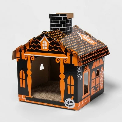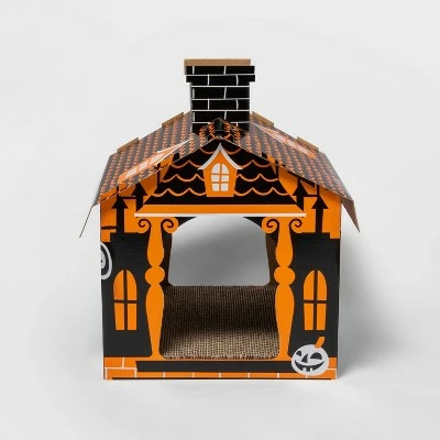Keep your cat happy while adding a fun and spooky touch to your seasonal decor with this Halloween Basic Haunted House Cat Scratcher from Hyde & EEK! Boutiqueâ„¢. Made from cardboard in black and orange hues, this cat scratcher is designed to look like a haunted house and features scratchable floors your cat will love. Simply place it in any of their favorite spots in your home to help keep them occupied and their claws under control.