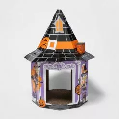 Your furry best friend can celebrate Halloween along with you with the Halloween Witch House Cat Scratcher from Hyde & EEK! Boutiqueâ„¢. Made from paper, the scratcher is designed to look like a witch’s cottage, with two friendly witches and a sign that reads “trick or treat stop here,” adding to the seasonal fun. A scratchable floor keeps your cat entertained and helps control their claws, while the entire piece adds to your arrangement of Halloween decor.