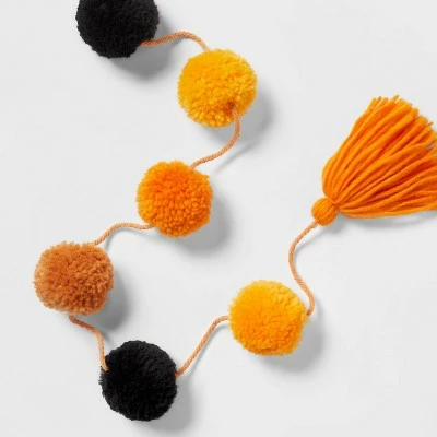 Take your fall decorations to the next level with the Harvest Pompom Garland from Hyde & EEK! Boutiqueâ„¢. This 72-inch pompom garland is designed in classic fall colors — yellow, orange and black — and displays horizontally. It’ll look great hung above your mantle or along a wall as part of a cohesive autumn-themed display.
