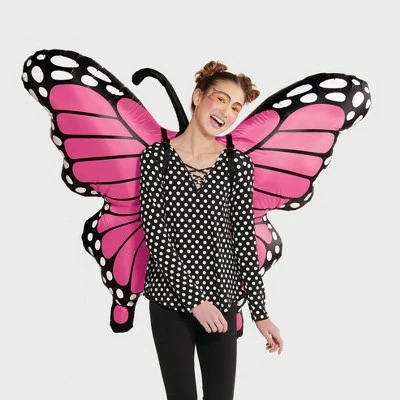 Let your kid soar this Halloween by dressing them in the Inflatable Butterfly Wings Halloween Costume Wearable Accessory from Hyde & EEK! Boutiqueâ„¢. Made of a lightweight material, this costume includes pair of large pink butterfly wings complete with a battery-operated fan (batteries sold separately). Pair these wings with a polka-dot shirt to complete the super-cute look.