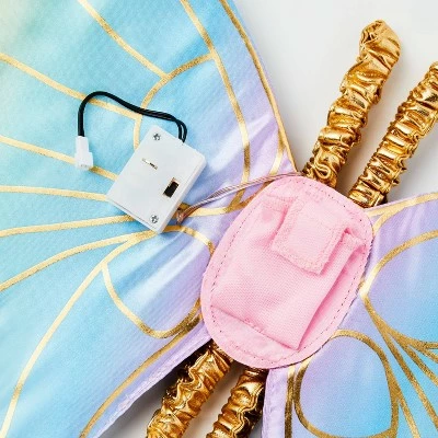 Your kid can take their costume to the next level with the Light-Up Unicorn Wings Halloween Costume Wearable Accessory from Hyde & EEK! Boutiqueâ„¢. This wearable wing accessory is made from soft, lightweight fabric in rainbow hues and is designed with straps that slip over their shoulders for easy wear. The wings light up in a variety of colors with the help of the included batteries, so your child can light up the night while trick-or-treating or surprise their friends with a truly magical unicorn or butterfly costume.