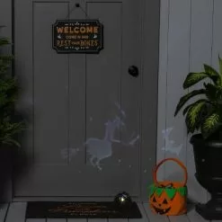 - LED witch rotating shadow Halloween special effects lights prop casts shadows for nighttime fun
