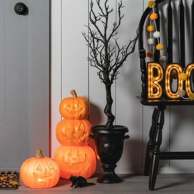 - Light-up triple stacked pumpkin Halloween decorative prop