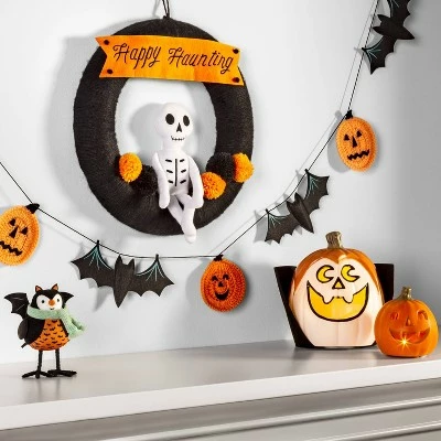 If you’re looking for a decoration that combines crafty and spooky, look no further than this Crochet-Like Pumpkin and Bat Halloween Garland from Hyde & EEK! Boutique™. Adorned with white crochet-look pumpkins and scary black bats, this six-foot-long garland hangs horizontally and can easily add a Halloween vibe to any room when hung on the wall, door frame or window. It’s great for creating a backdrop for other seasonal decor, such as candles, figurines and ceramic pumpkins.