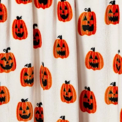 Add a fun, festive look to your home with the Pumpkin Printed Plush Throw Blanket in Ivory/Orange from Hyde & EEK! Boutiqueâ„¢. Featuring a lightweight fabric construction, this smiling pumpkin-print blanket is made of a soft fabric with a plush knitted texture for comfy appeal. Drape it over the back of a sofa or chair in your living room, and pair it with a coordinating Halloween throw pillow for a fun look.