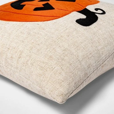 - Square throw pillow with pumpkin design