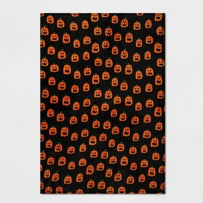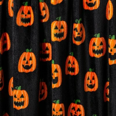 The Pumpkins Printed Plush Throw Blanket from Hyde & EEK! Boutiqueâ„¢ is the perfect cozy complement to your Halloween decor. Constructed from lightweight, plush fabric, this comfy throw blanket boasts an allover orange pumpkin print set against a black background for a fun contrast effect. Pair it beside Halloween-themed pillows to create a spooky oasis in your home, or other seasonal decor for festive flair. Best of all, you can simply pop it in the washing machine when it gets dirty (like when someone inevitably smushes a chocolate into it after trick-or-treating).