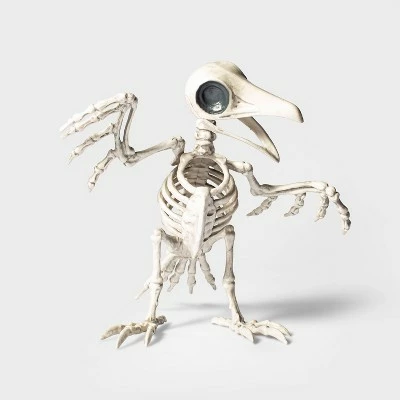 Bring eerie vibes to your Halloween display with this Raven Skeleton L Halloween Decorative Prop from Hyde & EEK! Boutiqueโข. This raven prop makes an exciting addition to your seasonal Halloween decorations. It features an ivory skeleton model of a standing raven with realistic bone detailing to add a creepy look wherever placed. This decorative skeleton prop is suitable for both indoor and outdoor use so you can place it on your dining table, entryway console or front step for fun, spooky style.