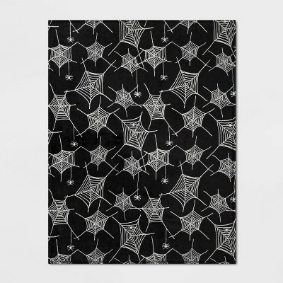 Your Halloween decor can help keep you warm when you use the Spider Web Printed Plush Throw Blanket from Hyde & EEK! Boutiqueâ„¢. Featuring a lightweight fabric construction and a cool spider web pattern, this black-and-ivory throw blanket is made of a soft fabric with a plush knitted texture for comfy appeal. Drape it over the back of a sofa or chair in your living room, and pair it with a coordinating Halloween throw pillow for a fun look.