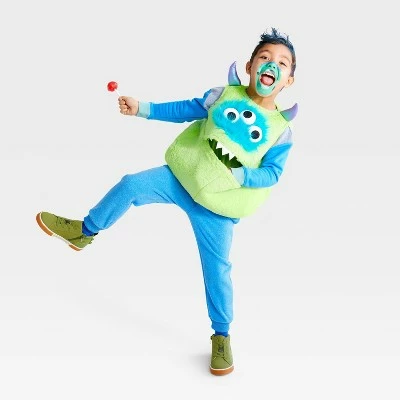 If your toddler is all about the candy collected on Halloween, why not try this Toddler Velvet Monster Candy Pouch Halloween Costume Pullover Top from Hyde & EEK! Boutiqueâ„¢! This costume for toddlers is a pullover-style velvety monster in bright lime green, featuring soft silver-colored horns on the shoulders and three googly eyes rimmed in bright blue fur. This monster’s smiling mouth is actually a pouch where your trick-or-treater can stash all their candy, small toys, and more. Perfect for wearing over their street clothes while trick-or-treating, this one-size costume can also be added to their dress-up outfits for hours of make-believe fun.