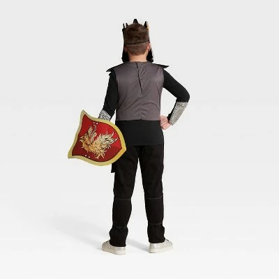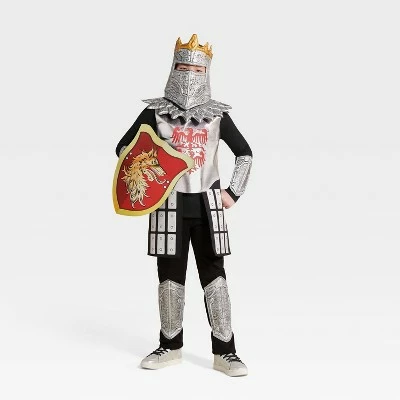 This Crusader Halloween Costume Top with Accessories from Hyde & EEK! Boutique™ will have your kid dreaming of medieval adventures. Made from soft, lightweight fabric with plastic accessories, it includes a silver tunic with a red emblem as well as gauntlets, greaves, a helmet and a shield — everything they need to feel like a real adventurer. Best of all, the costume’s pullover style makes it easy to wear over street clothes for trick-or-treating.