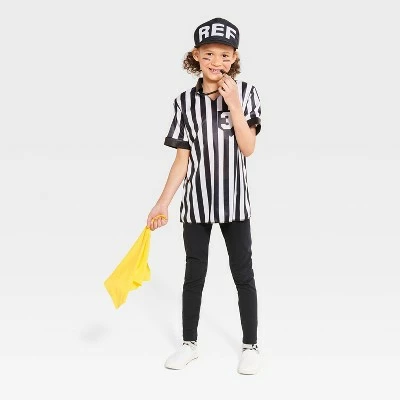 - Includes striped ref shirt, hat, whistle and flag