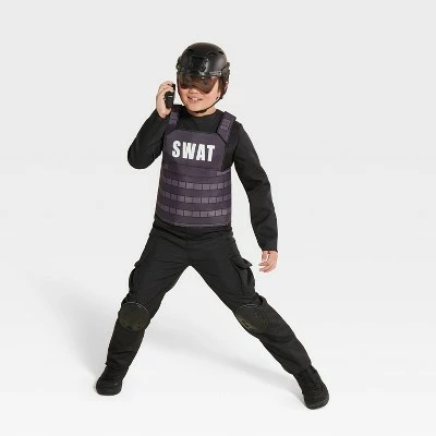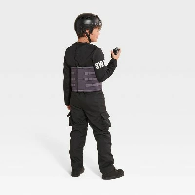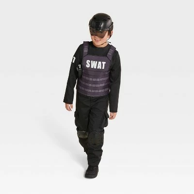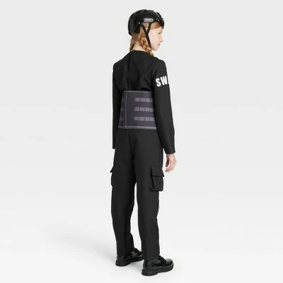They’ll look ready for duty with this SWAT Officer Halloween Costume Jumpsuit with Accessories from Hyde & EEK! Boutique™. Made from soft, lightweight fabric for comfy wear, the costume includes a black jumpsuit, a black vest with “SWAT” in white letters, a walkie talkie and a helmet with a visor — everything they need to look and feel like a real SWAT officer. Recommended for ages 3 and up, it features a hook-and-loop closure to keep the costume secured and can be easily worn over their regular clothes for trick-or-treating.