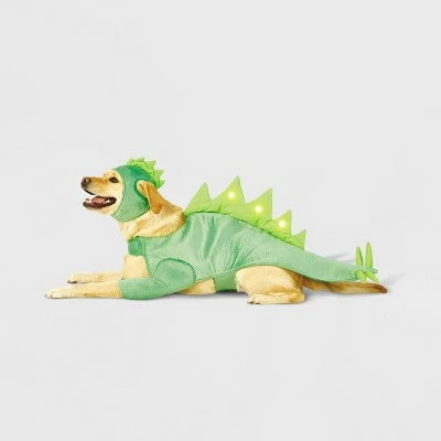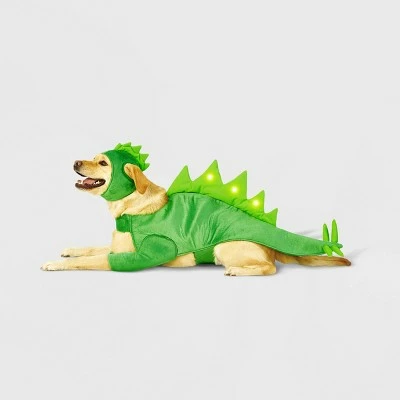 Help your pet realize their dinosaur dreams this Halloween with the LED Stegosaurus Dinosaur Dog and Cat Costume from Hyde & EEK! Boutique™. Made from a soft, lightweight fabric to keep them comfy through the festivities, this costume is designed for cats and dogs. This cute full-body costume in green features light green plates down the back as well as a stegosaurus hat with matching green plates, ear holes, and glowing red LED eyes. The hook-and-loop closure helps keep the body costume secured so your furry friend can enjoy Halloween night along with you!