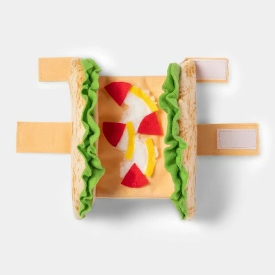 Your furry best friend will be the life of your Halloween get-together this year with the Taco Dog and Cat Costume from Hyde & EEK! Boutique™. Made from a soft, lightweight fabric to keep them comfy through the festivities, this costume is designed for cats and dogs. It showcases a taco shell that wraps around their midsection with lettuce, cheese and other toppings for a cute and super-funny look, and the hook-and-loop closure helps keep the costume secured.
