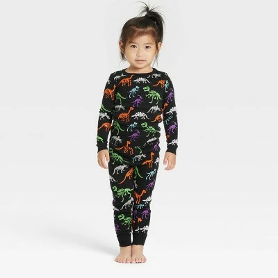 Your toddler will love snuggling up to sleep in this cute and cozy Halloween Dino Skeletons Dino Skeletons Matching Family Pajama Set from Hyde & EEK! Boutique™. These printed toddler PJs include a long-sleeve, round-neck tee and matching pull-on pants, both in black and covered with an allover print of colorful dino skeletons. With a snug, cozy fit and soft, 100% cotton fabric, these dino pajamas make a perfect pick for chilly fall evenings. Plus, they’re part of a matching Halloween family pajamas collection so everyone can get in on the spooky dino skeleton fun.