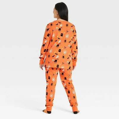 You can match your PJs with the rest of your family this Halloween season with the Halloween Matching Family Pajama Set from Hyde & EEK! Boutique™. This PJ set includes a long-sleeve shirt and pants, both designed in an orange hue with allover Halloween-themed print including ghosts, bats, spiderwebs and more. Both pieces are made from 100% cotton for a soft feel, and the pants feature a full elastic waistband for stretchy comfort and a custom fit.